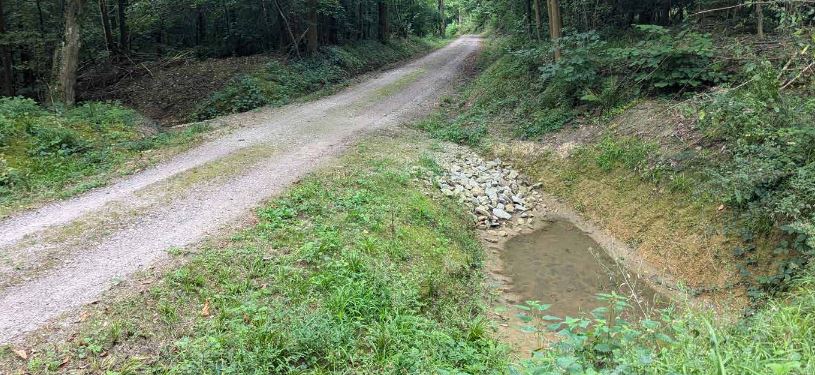 Neben dem Wegenetz leiten auch natürliche Strukturen (z. B. Kerbtäler, Hangmulden) sowie alte Wege und Entwässerungsgräben Oberflächen- und Quellwasser gebündelt ab. Viele dieser Gräben wurden früher angelegt, um feuchte Standorte für die Forstwirtschaft nutzbar zu machen. Der Rückbau oder Verschluss von Entwässerungsgräben reduziert Abflussspitzen und hält Wasser im Wald zurück. Dadurch wird nicht nur die Wasserversorgung des Bestandes verbessert, sondern auch der Erhalt von Feuchtbiotopen und typischen Lebensräumen unterstützt.